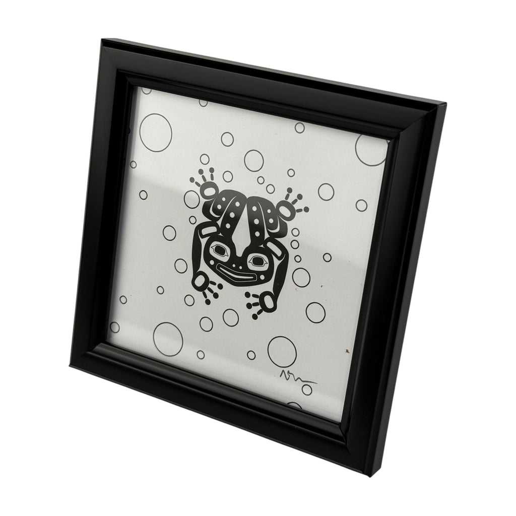 These tiny giclée prints are all designed by Trickster co-founder Rico Worl with the exception of the Mendenhall Glacier and Frog print which were designed by Trickster co-founder Crystal Worl. Each print is hand signed by the artist.